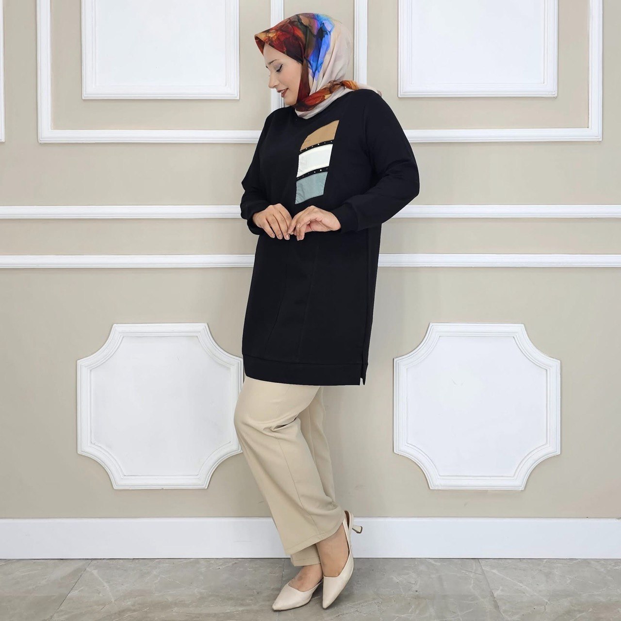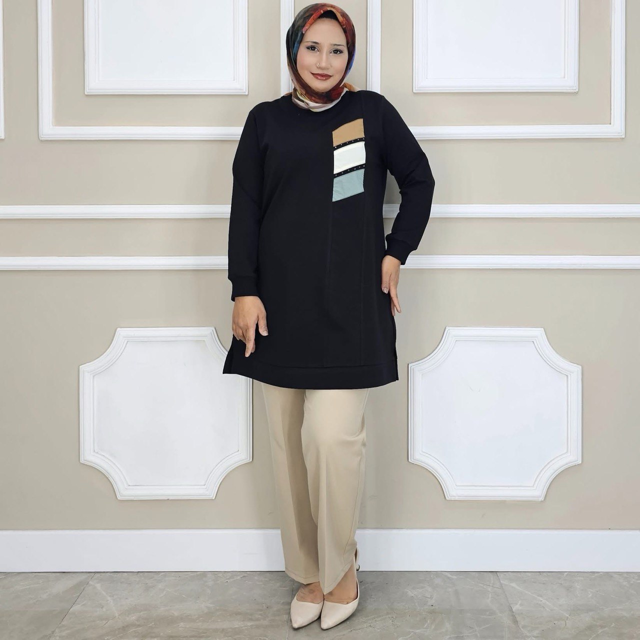 عارضة الأزياء: الطول: 1.69 الصدر: 83 الخصر: 64 القاعده: 92